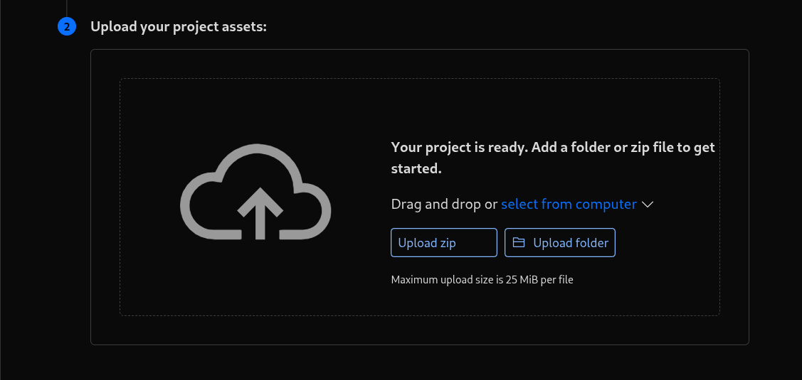 I choose "Upload folder", then choose the whole _site folder on the file picker.